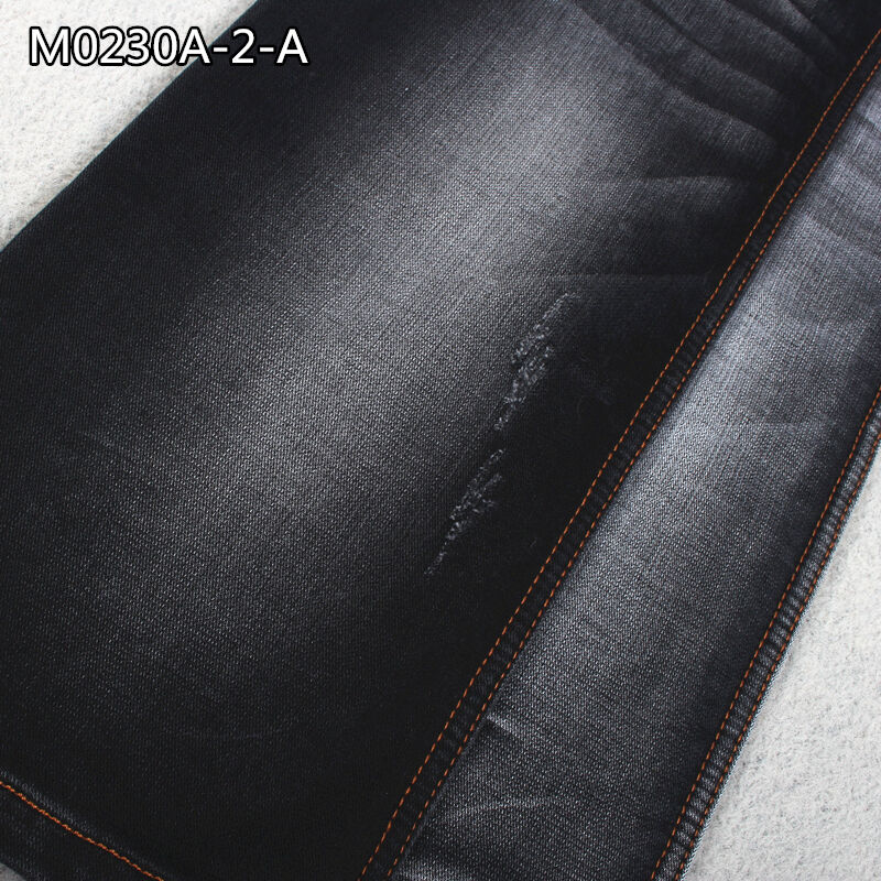 tejido vaquero de doble capa teñido anudado y de hilo peinado negro de 12 oz en la parte posterior